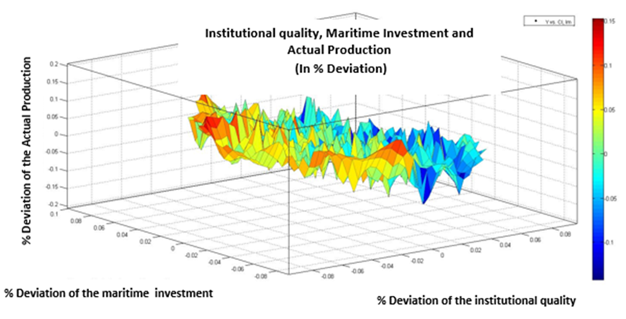 Figure-3. Institutional quality, maritime investment and production.(Simulation, in % Deviation standard).