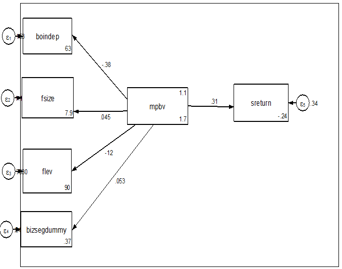 Model 1 examines the link between corporate performance and board independence with the control variables. Model 2 adds conservatism as a moderating variable to Model 1. If the R2 in Model 2 is higher than R2 in Model 1 then conservative strategy amplifies the relationship between performance and board independence. To control for unobservable and time-varying components of firm-level data, a panel data analysis was undertaken using Model 2. Again, to test the interaction effect between the moderator and the outcome and explanatory variables, a structural equation model was implemented.