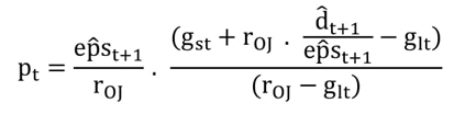 Model 3. The Ohlson and Juettner-Nauroth (2005) model of abnormal earning growth valuation is as follows: