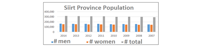 Siirt has 0.4 % of total Turkey’s population as 77.695.904. 51.4 % of this population is male as 164.098 individuals, and then 48.46 % of it is female individuals as 154.268 (www.tuik.gov.tr, 2015). The livelihood of society in the province is mostly based on agriculture and husbandary, and it is seen that the industry was not fairly developed.
