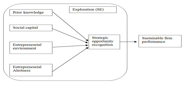 The primary objective of this study is to propose a new conceptual framework for determining exploration SE and overall performance of SMEs. The proposed framework discusses the proposed mediating effects of strategic opportunity recognition on the relationship prior knowledge, social capital, entrepreneurial environment, entrepreneurial alertness and SMEs performance. Similarly, the proposed framework is presented as a strategy to be used in linking the inadequate academic explanation in the existing literature on the relationships between prior knowledge, social capital, entrepreneurial environment, entrepreneurial alertness and SMEs performance and mediating role of strategic opportunity recognition. Hence this study serves as basis for future research on exploration SE-SMEs performance. There are number of limitations to this study. Firstly, this proposed conceptual framework needs empirical studies for its validation. It is suggested that future studies should consider other contingent variable i.e. exploitation as mediator to expand the SE – SMEs performance literature.