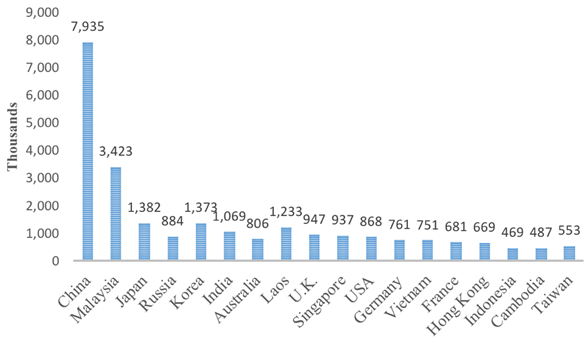 Figure 2 shows that the top three foreign tourists mainly are Chinese, Malaysian and Japanese. Nilnoppakun and Ampavat (2015) stated that the majority of domestic tourists who visited Thailand would like to have experiences related to arts and cultural events (64%) whilst the second activity are the local festival/ceremony (53.6%). In another viewpoint, Lertputtaraka et al. (2014