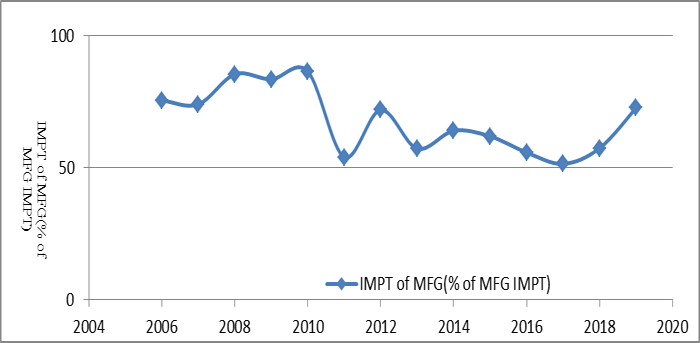 Figure-1. Trend of import of manufacture as a percentage of merchandise imports.