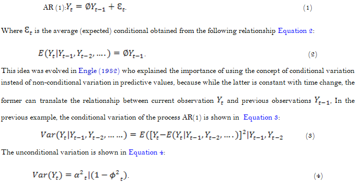 All these principles were used to simplify the drafting of previous ARCH models. Engle (1982) recommended it to bridge the shortfall experienced by previous ARMA models, especially in time series characterized by rapid volatility.