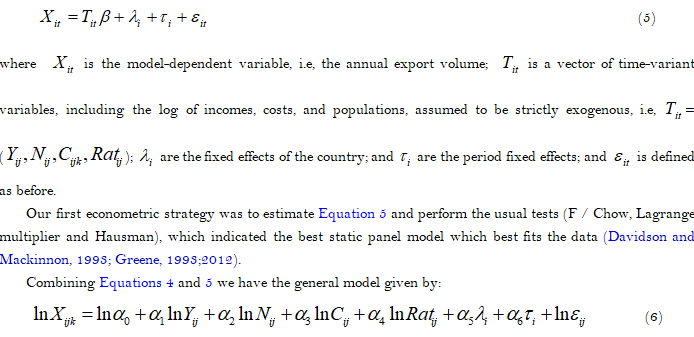 The gravity model shown previously will be estimated through panel data. According to Greene (1993); Hsiao (2003