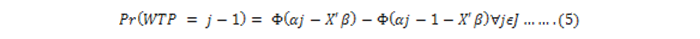 Willingness to pay (WTP) is a multiple response variable that has inherent order or rank so the ordered probit model is appropriate which can be expressed as: