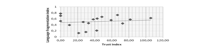 There are values of the Trust index, Ethnic fragmentation and Religion fragmentation indices, provided by Alesina et al. (2003) and Language fragmentation index, provided by The Ethnologue Project (2009) in a Table 1.