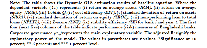 Finally, this study covers the latest balanced panel bank-year observations that drive to focus the linear and non-linear effect of corporate governance on bank performance and risk-taking behavior of Bangladeshi commercial banks by applying system generalized method of the moments (GMM) and dynamic ordinary least square (DOLS).