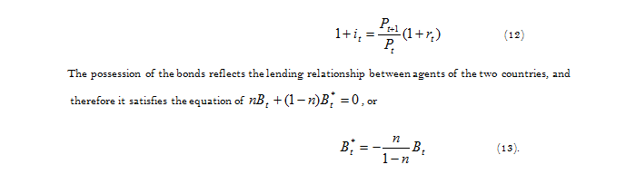 Assuming that there is an integrated international capital market between the two countries, either of which can trade real bonds ( B ) in the market, and the relationship between the bond maturity real interest rate ( r ) and nominal interest rate ( i ) is based on the Fisher equation, expressed as: