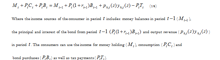 Where Eq. (17) is the Euler Equation of consumption, which describes the intertemporal consumption behaviors, Eq. (18) is the equation of money demand for indicating the substitution relation between real money demand and consumption, Eq. (19) is the labor supply equation which stipulates the substitution relation between labor supply and consumption.