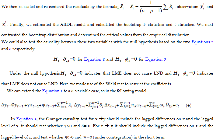 However, because of the properties of small samples, the bootstrap method can overcome the small sample size problem. McNown et al. (2018) developed a bootstrap methodology based on the Bootstrap ARDL test proposed by Pesaran et al. (2001