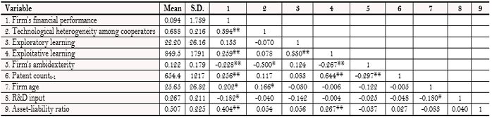 ) but few empirical studies have taken them as moderator variables. Exploratory learning, exploitative learning and ambidexterity as important intra-firm learning strategies might affect the relationship between technological heterogeneity among cooperators and the firm’s financial performance.