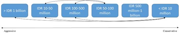 Demographic variables, such as age, occupation and income, affect investment decisions, as shown by the variable of LQ45 stock ownership because the demographic background affects decision-making. For instance, older investors tend to be more conservative in their stock selection. Additionally, people in the work-related education group are more conservative than those in other groups. In terms of income, the highest income group (above IDR 1 billion) is more aggressive than other groups.