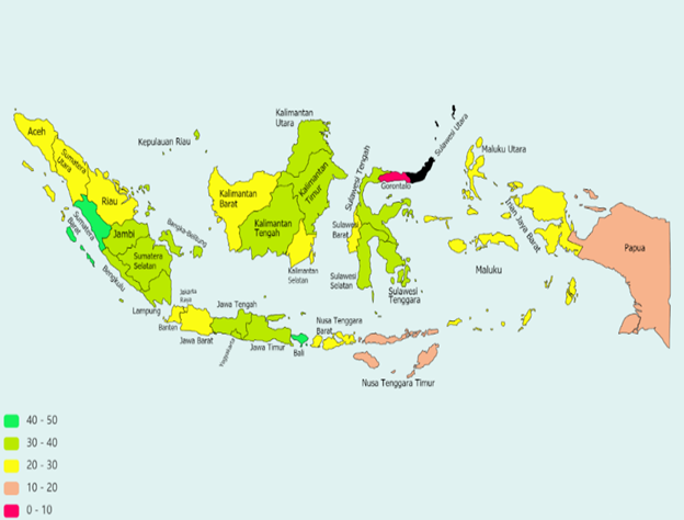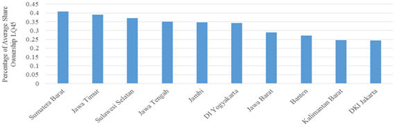 Figure 6 shows that DKI Jakarta is an area dominated by risk-taking investors. Also, the top ten regions are known to be all under 0.5 or 50% of LQ45 share ownership. This indicates that these ten regions are areas containing investors who are willing to take risks.
