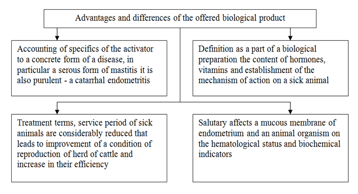 On condition of endometritis treatment at cows by the standard methods the term of sick animals recovery was lasted on average 7-10days.. On condition of endometritis treatment at cows by the offered biological product term of sick animals recovery was reduced and lasted on average by 4 days.