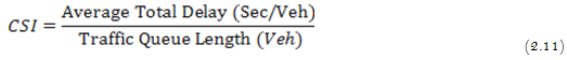 It is used by Federal Highway Administration Authority (FHA, USA) in reporting the results of system analyses using “Highway Performance Monitoring System” data. The CSI has units of roadway delay per million vehicle kilometre of travel. For the present study, the CSI would be the ratio of the average total delay experienced to the traffic queue length at the instant in travel, and then the equation of CSI would stand as follows: