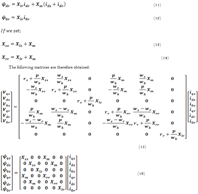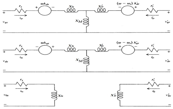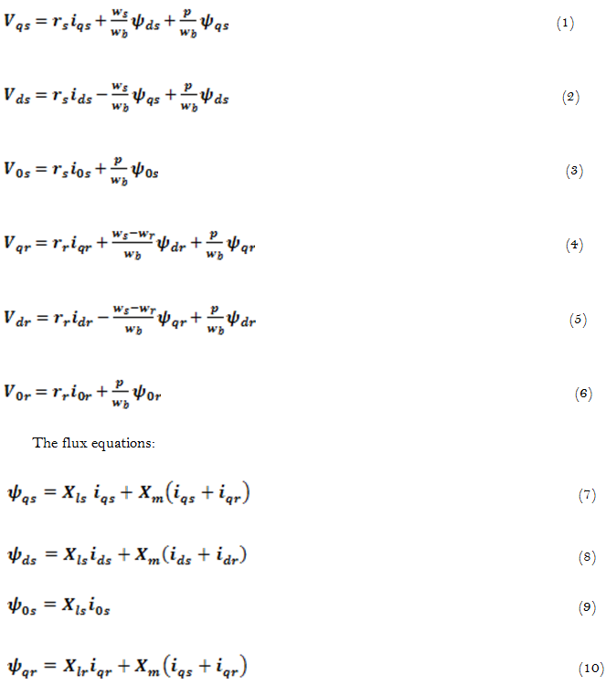 Considering the electrical model of the induction motor, the voltage equations can be derived as: