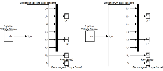 ] and thus it is easier to model. In this work, the reduced model is obtained by completely reducing the stator transients. This means that the differential equations of the stator variables are set to zero. This makes for easy modelling and analyses of the motor. In this work, the complete model and the reduced model are compared. This is to show whether the reduced model is sufficient to be used in the analysis of the behavior of induction motors. The complete and the reduced models are simulated in a MATLAB/Simulink program. This program is preferred because it is easier to use; it can accomplish the dynamic model in a simple way; and it can be simulated faster with the use of function blocks.