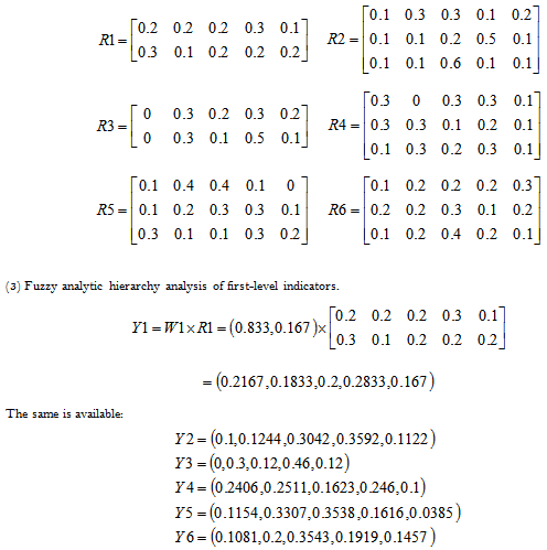 (2) Determining the fuzzy comprehensive evaluation matrix of the first-level indicators.