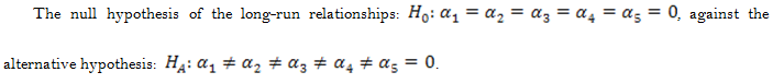 To examine the symmetric relationships in Equation 2 we used the autoregressive distributive lags popularized by Pesaran et al. (2001). Pesaran et al. (2001