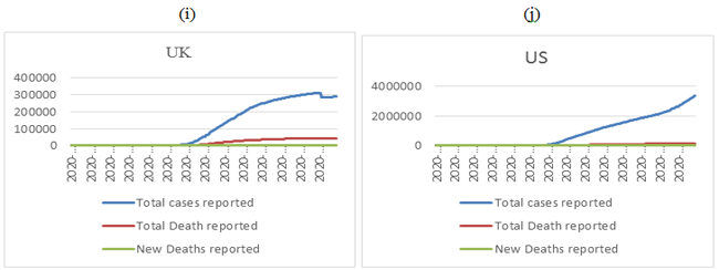 In contrast, the number of newly infected individuals is falling drastically after reaching its maximum in March-April in Japan, Germany, and France and maximum in February in China, therefore, their financial market has been stabilizing in June and July 2020. There is an inverse relationship between the number of infected individuals and the performance of financial markets. However, it shows from Figure 1, the globalization of Covid-19 outbreak and its negative economic impacts have generated havoc across all countries in the world.
