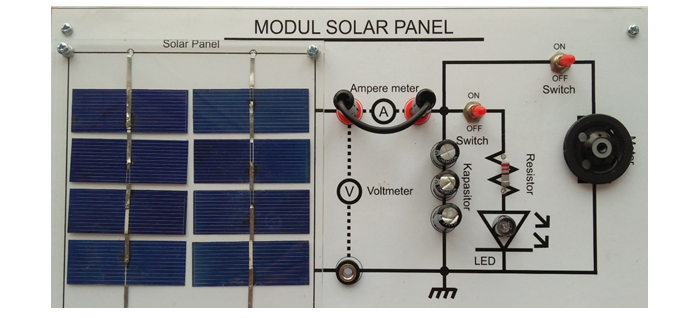 There are four components that should be introduced at the world of education at school although it is sometimes not necessary for the students at the Junior High School level to be familiar with them. The four components are a) solar panel; b) battery; c) controller and d) inverter. Solar panel or photovoltaic cell is a semi-conductor consisting of a circuit of diodes that may change the sunlight into the electric energy (Brian, 2015 ). A learning medium make merely consists of a circuit of micro solar panel and a load in the form of an LED lamp and also a dynamo that may be used to show the students about the existence of electricity from the solar panel if it is exposed to the sunlight (Picture 1).