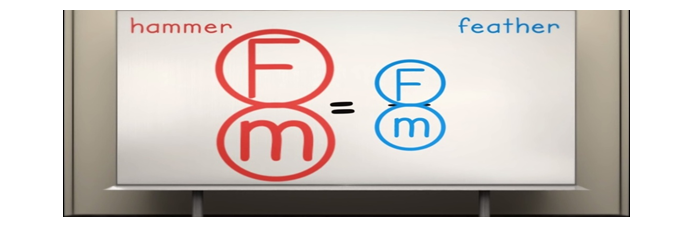 It can be considered that the above screen helps students visualizing how the ratio between F and m held constant of the two objects. It indicates that when m is large F should also be large and vice versa so that the ratio is equal to g, the gravitational acceleration.