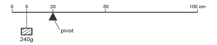 The centre of mass of the ruler is at the 50 cm mark. What is the mass of the ruler?