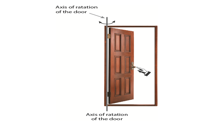 In Figure 11, it is assumed that the child and man exert the forces on the same line on the door from the two sides of the door, and the two forces are perpendicular to the plane of the door. Then case of the door in equilibrium too can be brought into a type of numerical problem as given below.