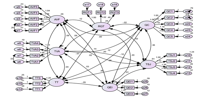 The measurement model is designed to investigate relationships between latent variables and what they measure. This study produces a measurement model to examine the factor for the quality of education.