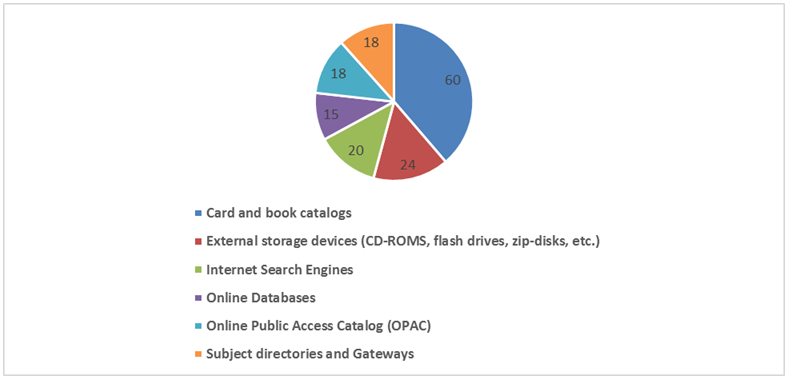 The behavior of searching for information from Internet users which shows that academic staff spent more time online than Students and research scientists, through the search engines and which like Wikipedia Magazines online and Databases are their preferred sources of information (Martzoukou, 2008). Other research has similarly shown success Library users to access materials, especially through electronic retrieval tools to meet their information needs in an academic library (Ferber, 1996; Jegede and Owolabi, 2005).