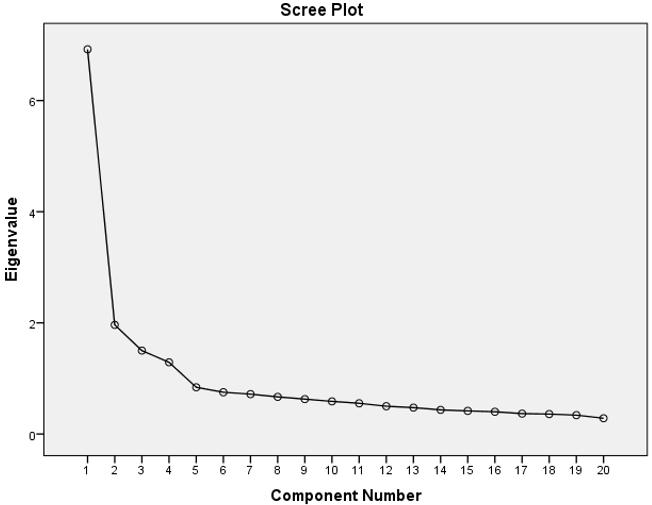 According to the findings in Table 1, the result is perfect because the KMO coefficient is .906. Therefore, the sample size in the research is sufficient. Another test required to apply factor analysis to a data set is the sphericity test, which tests the main mass integrity, and it was developed by Bartlett. In factor analysis, a high correlation relationship is sought between variables. In this sense, the Bartlett test is used to test whether there is a significant relationship between the variables in the data set (Tabachnick & Fidell, 2001). According to the findings in Table 1 (X2 = 3076.894; df = 190; P <0.01) Bartlett Sphericity Test was a success. According to these values, it can be said that the data are suitable for factor analysis.